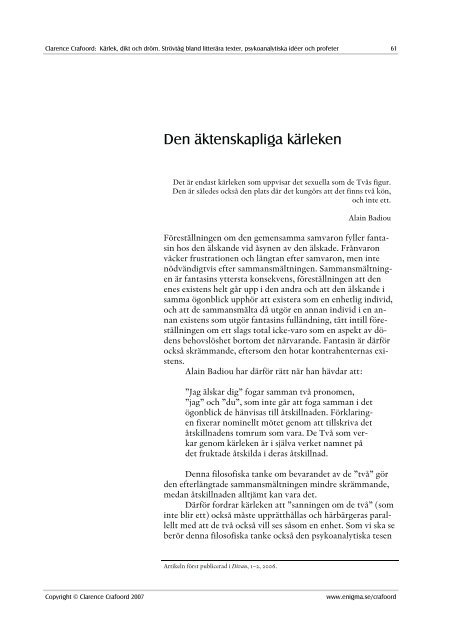 Det är omöjligt att vara förälskad och klok på samma gång. Dold kärlek börjar med romans. Kärlek under antiken jag ska skriva en analys kring kärlek under antiken.